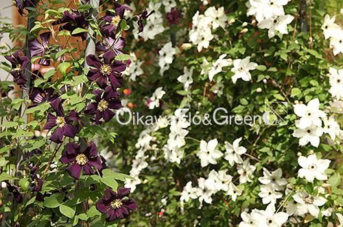 及川フラグリーンの庭では、ウッドデッキの柵に這わせるように、